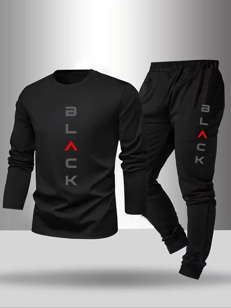 Men's Black Print Sweatshirt And Pants Two-Piece Set