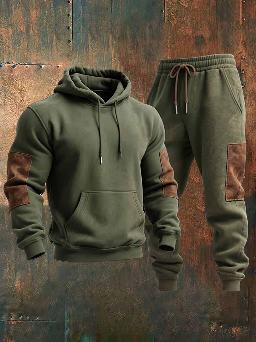 Men's Retro Casual Color Block Hoodie Set