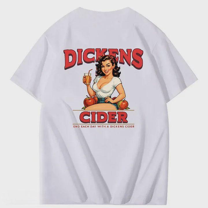 End Each Day With A Dicknes Cider Pattern Print 100%Cotton T-Shirt