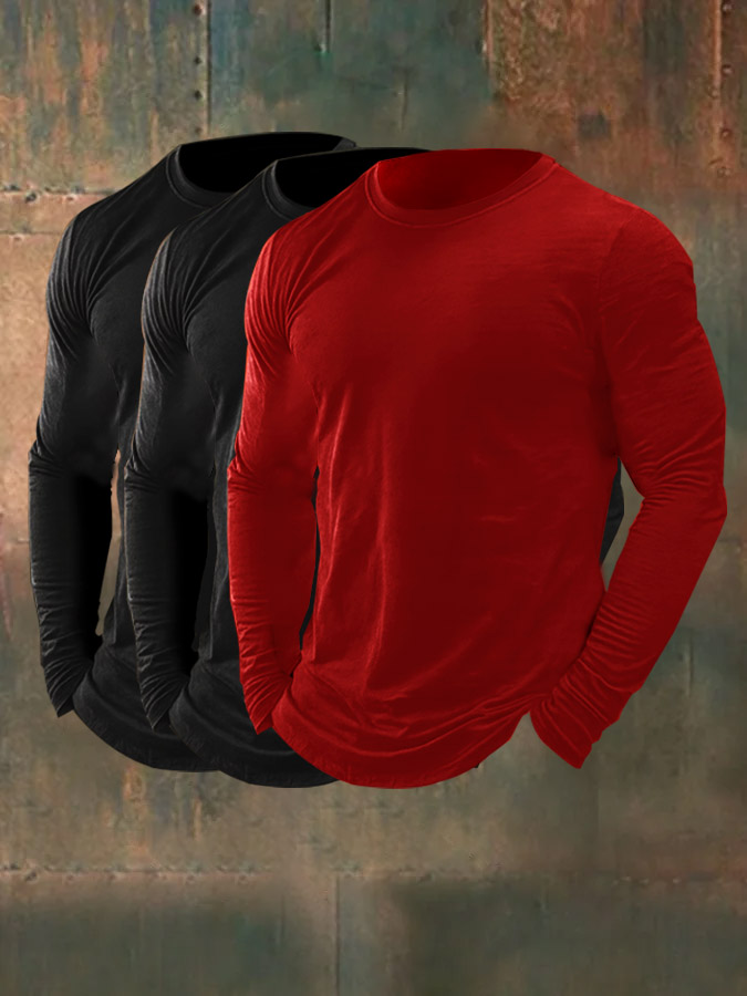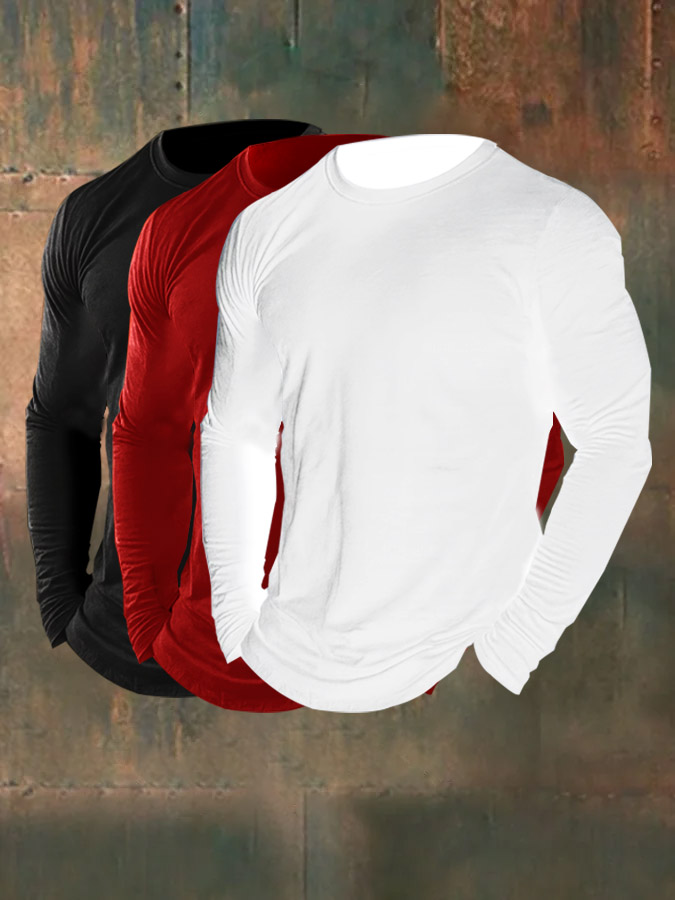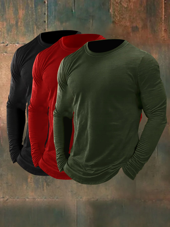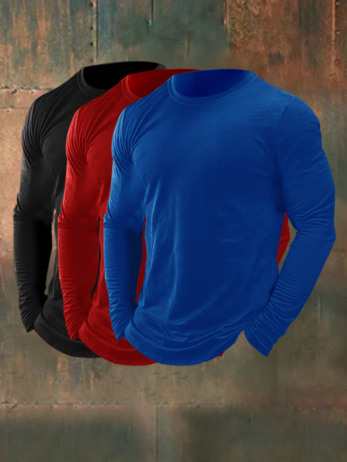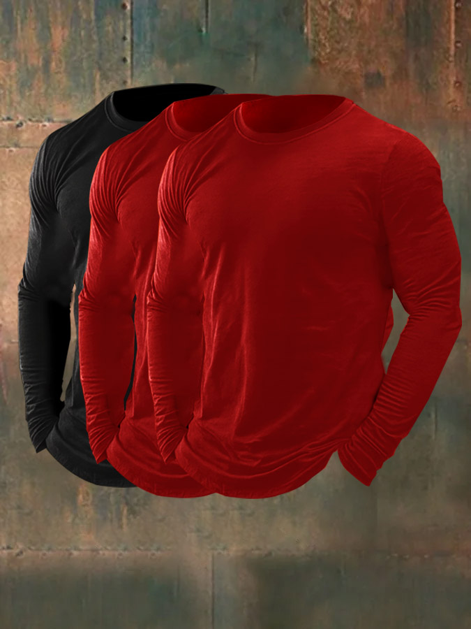 Men's 3-Piece Set, 100% Cotton Long-Sleeved Top